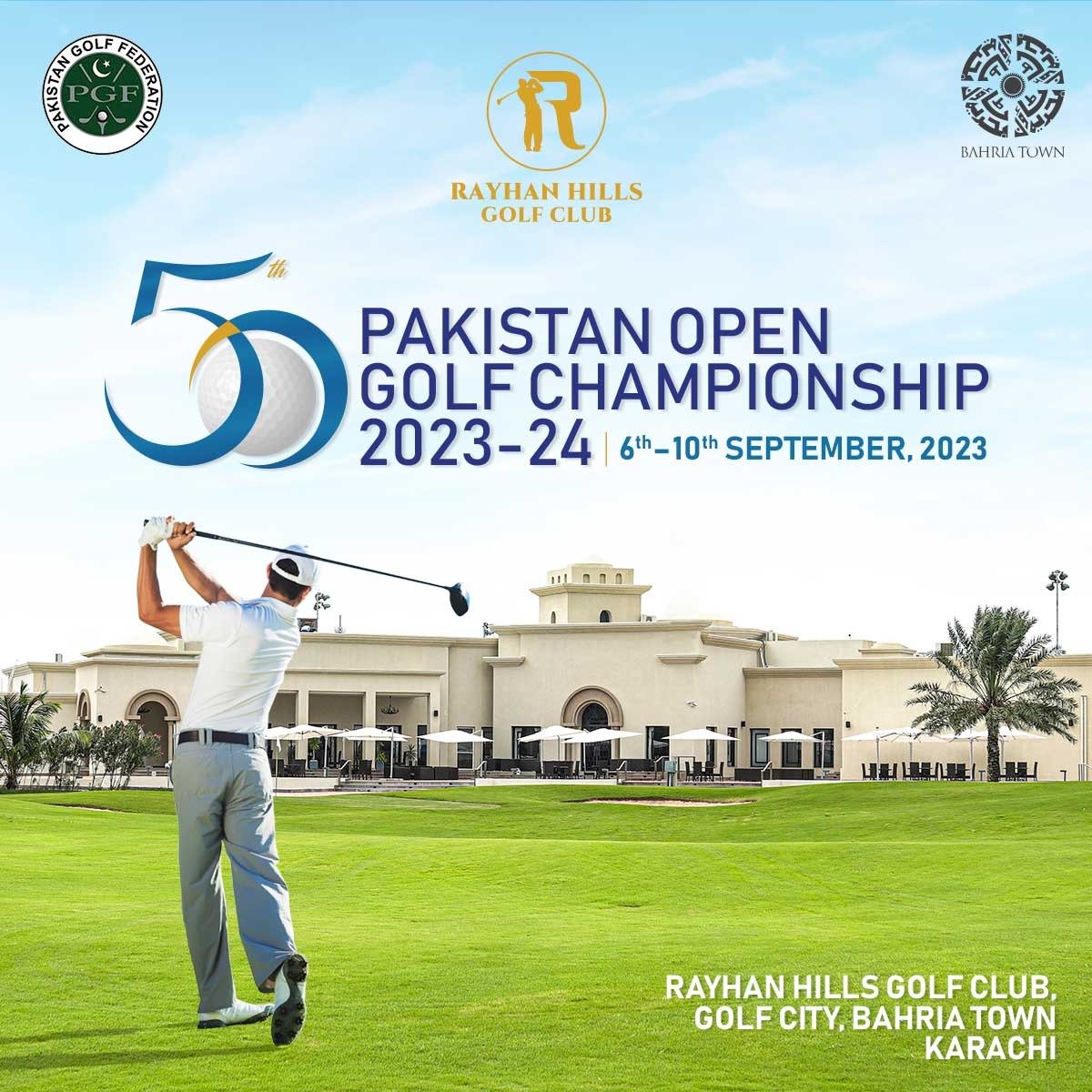 Bahria Town Karachi – The Rayhan Hills Golf Club is delighted to announce the much-awaited Pakistan Golf Federation’s 50th Pakistan Open Golf Championships 2023 – 24 from September 6th to September 10, 2023.
