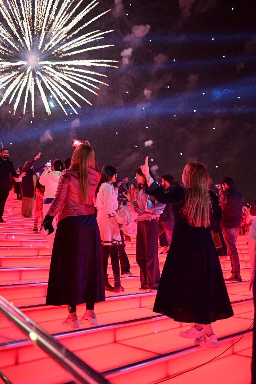 In Karachi, the skies above the Bahria Dancing Fountain came alive with a brilliant fireworks display, synchronized with an electrifying music concert, laser visuals, and the iconic fountain show. Thousands gathered to witness this magical moment as they welcomed the New Year with hope and optimism.