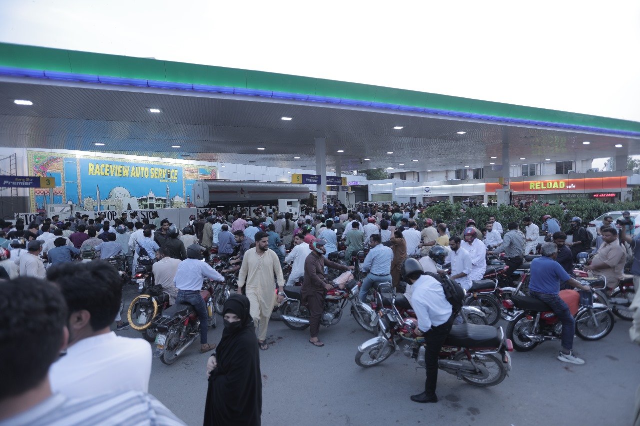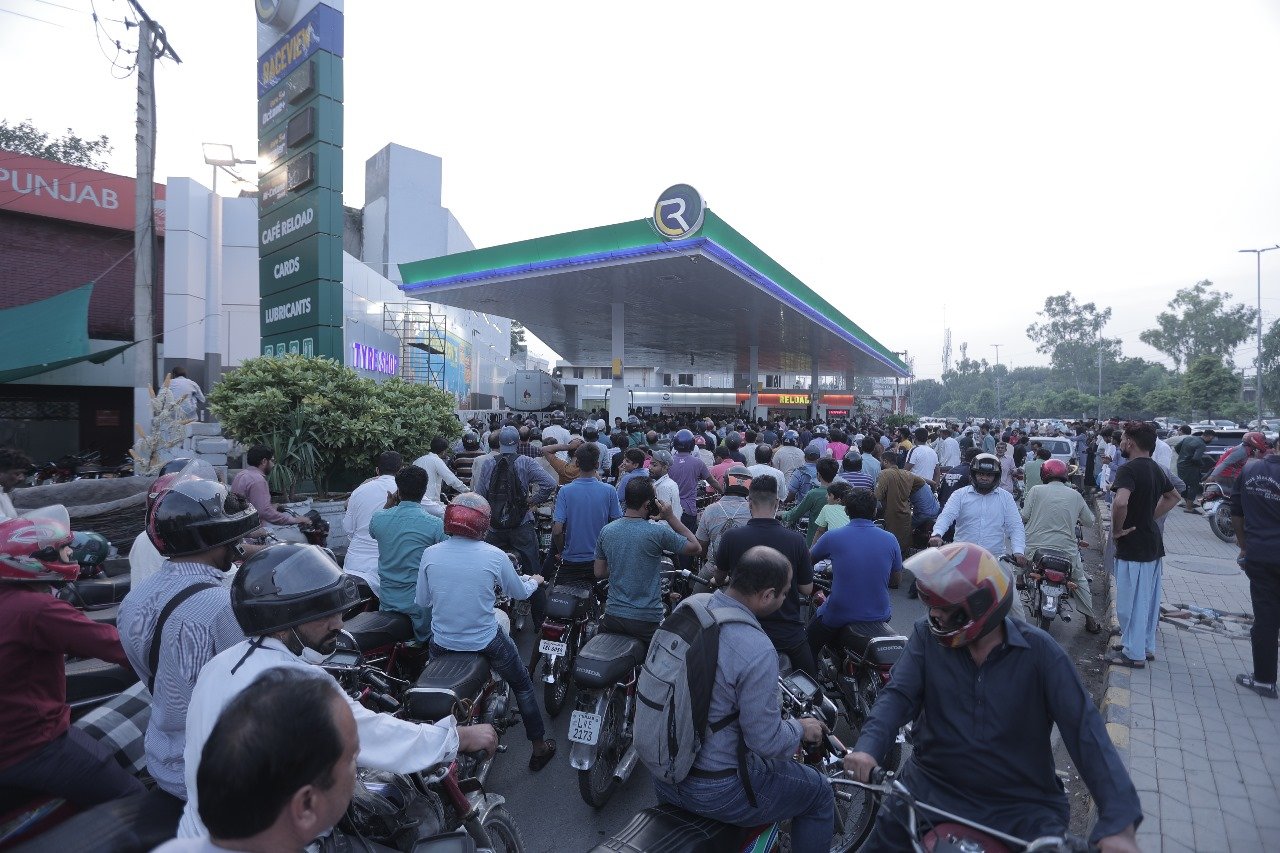 Karachi: People queuing to receive free petrol at a pump located in the vicinity of Services Hospital, Lahore on September 22, 2023, under Bahria and JDC campaign: Screengrab responding to the crippling effects of relentless inflation and soaring fuel prices on the most vulnerable segments of society, real estate tycoon and Bahria Town Chairman Malik Riaz Hussain has initiated a campaign to provide free petrol to those in need.